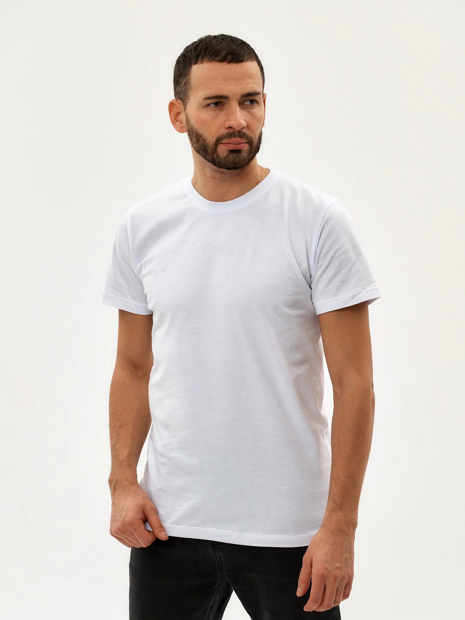Трикотажная футболка – незаменимая составляющая гардероба любого мужчины. Хлопчатобумажный трикотаж обеспечивает комфорт телу, способствует нормальному воздухообмену, предотвращает прямое попадание солнечных лучей, оптимизирует процессы потоотделения, в зимний период является дополнительным источником тепла. Разнообразие цветов футболок позволяет подобрать идеальный вариант, соответствующий типу внешности, особенностям характера. Короткий рукав достигает середины предплечья, форма горловины подчёркивает сильную шею. Футболка не требует особого ухода, подлежит обычной стирке.